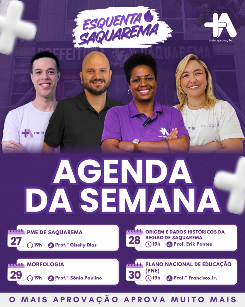 Agenda da semana para concurso Saquarema traz aulas gratuitas e temas essenciais para acelerar sua preparação e revisão estratégica
