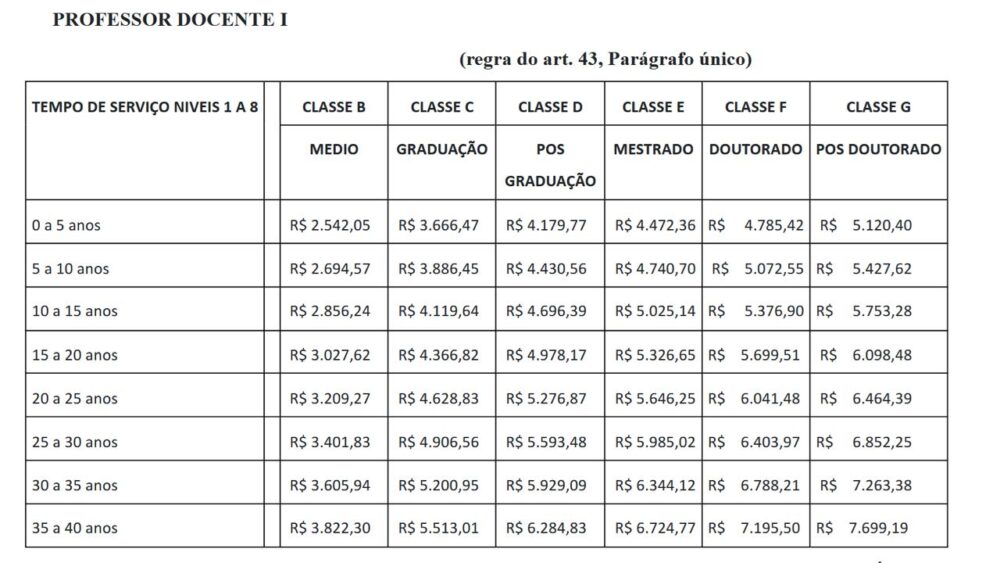 Plano de Cargos (Professor I)