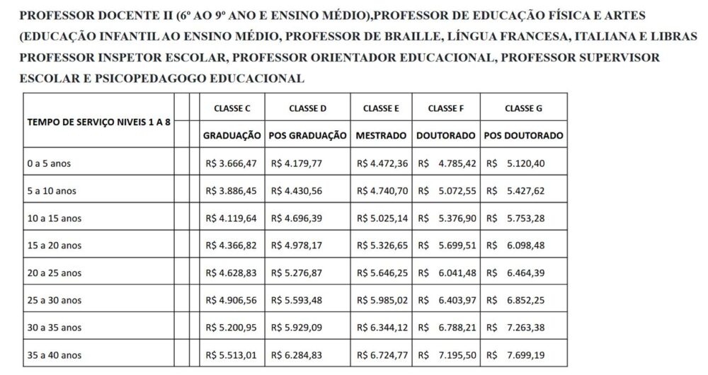 Plano de Cargos (Professor II – Anos Finais)